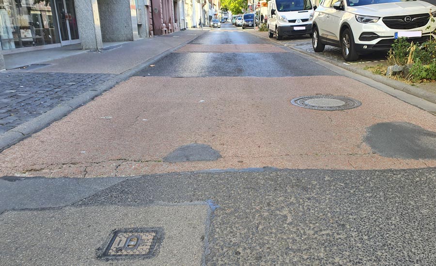 Die farblich abgesetzten Fahrbahnbereiche stammen aus dem Jahr 2012 und sind inzwischen stark rissig und unansehnlich. Erneuert werden vorrangig die roten Asphaltflächen, diese werden wieder in Rot hergestellt. Mit der neuen Asphaltdecke verbessert sich nicht nur die Optik, auch der Straßenlärm wird verringert. Zudem wird der Fahrkomfort erhöht, und der Fahrbahnbelag sorgt durch bessere Sichtbarkeit sowie eine ebene, rutschfeste Oberfläche für mehr Sicherheit für Fußgängerinnen und Fußgänger sowie Radfahrerinnen und Radfahrer. Besonders für die vielen Geschäfte entlang der Straße bedeutet das eine Aufwertung des Umfelds.