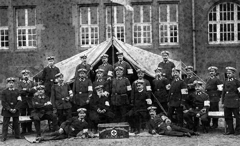 Fechenheim hat zum Leitbild des Roten Kreuz einen besonderen Bezug. Hier wurde schon am 27.6.1743 bei der Schlacht von Dettingen ein Lazarett eingerichtet, dass Verwundete egal welcher Nationalität aufnahm und behandelte.