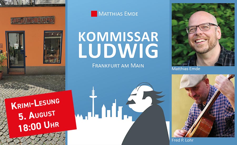 Im „Kleinen Haus“ in Fechenheim wird Matthias Emde aus seinem heiter-hessischen Kriminalroman „Kommissar Ludwig“ vorlesen. Begleitet wird er dabei von Fred P. Lohr an der klassischen Gitarre. Es werden also abwechselnd Seiten geblättert und Saiten gezupft.